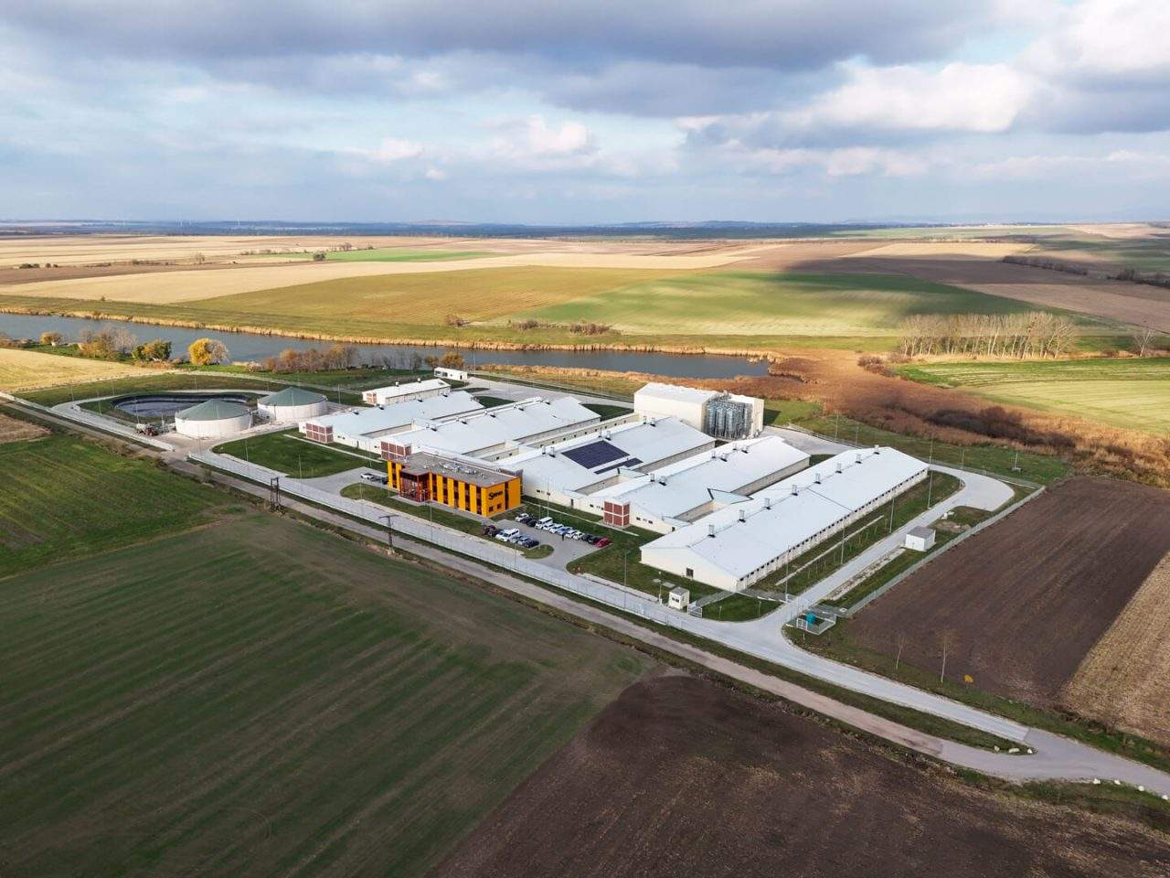 • Az első kivitelezési szakaszban megkezdődtek a fiaztató, a vemhesítő, a csoportos kocaszállás és a takarmánykeverő csarnok munkálatai. Az első építkezési szakasz 2021 novemberében ért véget.